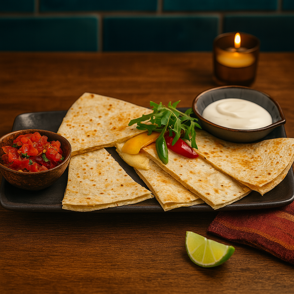 Serviert mit einer hausgemachter pikanten Salsa und Sauerrahm für den perfekten Geschmackskick.